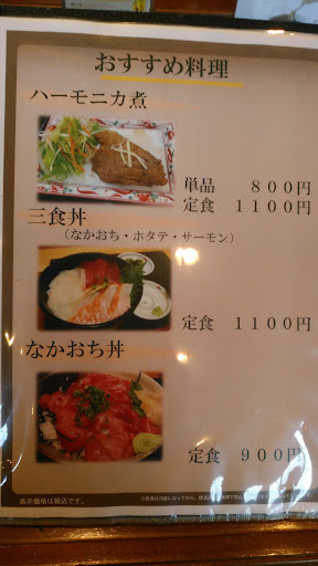 ハーモニカ定食で検索しヒットしたお店。 震災後仮設店舗の時に伺いハーモニカ煮定食を食べた事があり来店。 平日の12時着で先客2名、穴場です! 入店するもお店の人が居ない? チャイムも鳴らないので不安になります。 座って良いものか迷ってると奥から ご主人が出てきてホッ。 メニューを一通り眺めましたが 迷わずハーモニカ煮定食を注文しました。 塩梅良く煮込まれたハーモニカはご飯のオカズにピッタリ。ご飯が進みます。 こちらのハーモニカ煮定食激推しです!