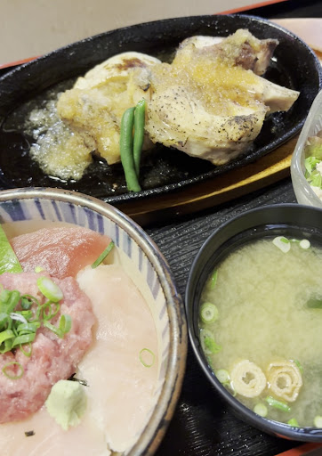 Read more数年前に此方の田中前店に伺うつもりが別の店舗が有る事を知らず見事に間違えて海の市店さんに伺ってしまった事が有りました。 今回又気仙沼で食事する機会が有りその事を思い出し入店する事に。 入店時時期も時期なので入り口でアルコール消毒を求められます。 店内には他に御客が数名。 席の間にはアクリルのパーティションが設置されていますが、正直御守り程度だと思われます。 今回は折角なのでカマトロステーキがセットの欲張り丼セットを注文しました。 セット物に有りがちな器が小さくなる様な事は無く、はっきり言って欲張り丼だけでお腹一杯になります。 カマトロステーキはオロシポン酢をかけて食べるのですが身がホロホロでとても美味しいです。 選んだメニューの値段は少々お高めでしたが他は求めやすい価格帯でした。 関係無い話しですが向かい側の電気屋さんは某耳がでっかくなっちゃうマジシャンの実家なんですかね? デッカイ耳の付いた車が・・・・・前にテレビで見た事が有ったの...