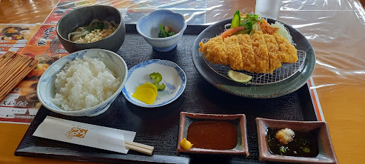 ドライブの帰りに空腹に背を押されて入りました。 席についてテーブルに張られてるメニューを見て厚切りロースカツ定食に決め呼び鈴を押す。 暫くしてお冷やを持った初老の店員がやって来て ドン! えらい勢いでコップを置く。 なんだ?このアマは? 腹が立ったがこちらは大人だ。テーブルのメニューを指差し 「厚切りロー」 まで言ったところで 「厚切りですね?」 と遮られてしまった。 「少しお時間かかります。」 と踵を返す店員の後頭部目掛けてコップを投げつけたい気持ちを必死で堪える。 注文から12分程でやってきたのは ロースカツ一枚、少量の千切りキャベツ。 香物、饂飩、和え物、ライス。 そしてソースが二種類。 まずはカツをそのまま一口。 ソースを付けて食べるのが前提なのだろう。 肉自体には何の仕事もしていない。 金を取る以上こんな手抜きが許されるわけがない。 仕方がないのでソースをチョン付けして食べる。 個人的には味噌ベースよりはあっさりした醤油ベースのソースが気に入った。 かなり大盛なライスに饂飩まであってボリュームは満点。 店員の接客態度さえよければあと🌟2つオマケしてもよかっ...