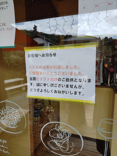 Read more桜を見た帰りにお昼にランチが出来そうなお店を探してたら偶然、見つけました。メイン通りから奥に隠れ家のように有るお店。オレンジ色の日よけが目印です。駐車場は6台位かな。 この日は12時にお店に入りました。タイミングが良かったのか、待ち時間20分くらいで入れました。 ランチメニューはうちら2人で終わりであとのお客様は単品メニューになりました。数に限りがあるようですね。 ランチメニューはピザかパスタが選べます。 2人でしたのでピザ、パスタをそれぞれ選びました。まずはサラダが来ましたが、凄く美味しいですね。お菓子?に生ハムを巻いたお菓子は絶品。 ピザが届くと6枚切りになっててもちもちして美味しい(^^) パスタも美味しくてトマトが今まで食べたこと無い美味しいトマトでした。これにデザート、ドリンクが付いて1600円以下はびっくりです。デザートは多分、瀬戸内レモンを使ったチーズケーキかな。 ま...