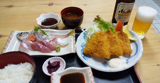 20211009再訪 刺身定食のエビフライをアジフライに換えて頂く。 アジフライ揚げたてアツアツは美味しいです! お刺身も新鮮で美味しい。 包丁の使い方もうまいのだと思います。 他のメニューも食べてみたいのだけれど、 この組み合わせとビールが最高すぎて(^。^)