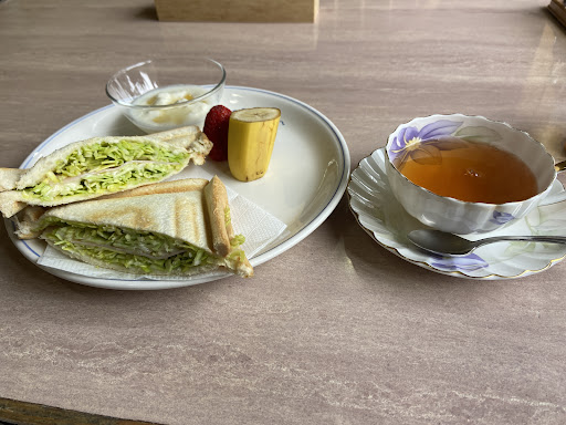 外観が古いし暗いので営業しているか不明でしたが、内部は最新😆騙されるわ モーニングをいただきました、この値段でこんな丁寧に作られたホットサンドが出てくるとは思いませんでした!県内にあったら毎週通ってしまう。 コーヒーも紅茶もとても美味しく、窓の風景もよい。小さなおばあちゃんもとても親切でした 駐車場が広いコンクリ敷き バイク乗りのモーニングにオススメです...