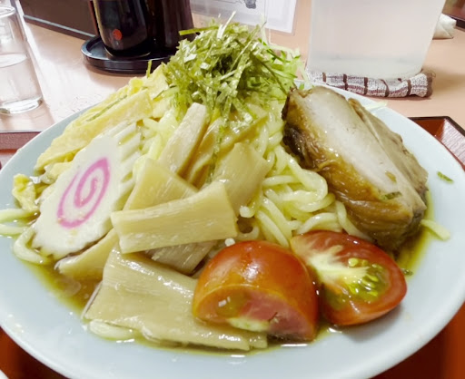 コンクリート打設するにあたって昼食と引換にホゲを買収しました。この暑いのに1人で手練りの作業は命の危険を感じたからです。 おかげで午前中のうちに他の作業も終わらせることが出来ました。ありがとう、ホゲ❗️ 汁だくの冷やし中華を求めて『渡辺食堂』、再訪問です。志賀製麺のモチモチ麺に丼から溢れんばかりの麺つゆは健在です。麺量も200gはありそうです。焼豚は良く味の染みた角煮タイプ、ナルトに卵にトマトにシナチク、素晴らしい。値段は上がってましたがコレなら文句無し。付け合わせの小鉢も美味しくいただきました。どうですか? 行ったことの無い方は是非❗️ホゲは何故か焼肉定食を食べました。