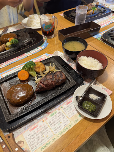 Popular chain restaurant only located in the Shizuoka prefecture known for its bloody rare salisbury steaks. The waitress will bring your food out and cut the lump of meat in front of you while is sizzles all of its meat juices... anyways you will smell like smokey meat when you walk out of restaurant. Huge minus is the long lines up to two hours. If you ever find yourself in the Shizuoka prefecture, this chain...