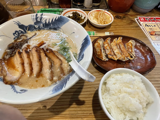 この店の前の通りは渋滞がひどく、なかなか来る機会がなかったが、たまたま今日は用事があったついでに寄れたので。 とんこつのこく味を注文。その味は可も不可もなく、よくある豚骨ラーメンといったところ。味千よりもあっさりしたような感じだろうか。熊本ラーメンとはちがう。 チャーシューは見た目通りのおいしさ。安心して頼めるが、この店じゃないとだめという理由もない。 味玉を切らずに丸のまま入れるのは好きじゃない。見た目に食欲をそそらないし、割る手間が美しくない。というか非力なひとや子どもなんかはかぶりつく必要があるだろう。 スープも特筆すべきところはない。獣臭くない無難おぶ無難。ごま、紅生姜、高菜と定番が並ぶなかにもやしナムルがある。ごま油と塩、胡椒だけで美味しくなるもやしナムルはありがたいが、ラーメンには合わない。入れたら最後、スープは冷えてラーメンの良さを損なうマイナスの使者。 餃子は割と美味しいと思う。でもやっぱり無難おぶ無難。 サービスと雰囲気を低くしているのは、なんていうかラーメン屋に来たって感じになれないところ。 レンゲを右に、チャーシューが手前に。スープを飲むにも麺をすするにも、置き方は真逆だと思うのは地域の違いとかだろうか。 熱くなってるので〜と定番のお声かけをいただいたが、別に熱くなんてない。温めていない丼にスープを注いだのだろう。猫舌にはありがたいサービスだが、わたしにはちょっと物足りない。 店員がみんな若く、覇気が足りなく青さばかりが目立つ……大学サークルかな? もちろんそれを全否定はしないが、職人というよりは見習いかお手伝いみたいな未熟さは一端の飲食店というよりは学園祭の出店。 とはいえ、他に食べたいものもなければここでいいだろう。なにし...