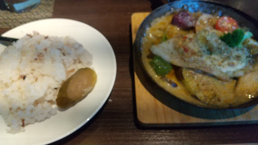 お冷も両手で3つまとめて持ってきて、自分の近いところにコースターもまとめてどんと置いただけだったので、トレンチなどで持ってきてはどうかと思います。 メインの料理を置いて、少し経ってからご飯が来て、となんか変な時間差がありました。まとめて持ってきて欲しかったです。笑
