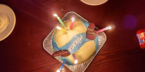 息子の誕生日ケーキを買いに行きました 今回はバレーボールをイメージしたケーキです 皆クリーム美味しいって言ってました ご馳走さまでした