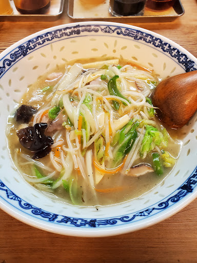 五目麺は醤油ではなく塩ベースのスープで、野菜や豚肉から染み出た旨味が混ざってとても美味しく、ほぼ飲み干しちゃいました。 麺との相性も良かったです。
