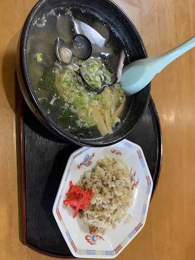 Read more非常にレトロな雰囲気のラーメン屋さん。 本日頼んだのはしじみラーメンと半チャーハンのセット。1300円でした。 しじみラーメンは凄くさっぱりしていて、塩がミルク臭くないので、とても食べやすいラーメンでした。ラーメンは濃ければ良いという物でもありません。こういう繊細なラーメンも好きです。 半チャーハンは強めに炒めてくれていてパラっとしてました。味が場所によってまばらなのも、卵かけご飯と同じな感じでそれはそれで美味しかったです。 駐車場は少しわかりづらいというか、横にも停められる感じでしたら7台くらいいけるでしょうか?ラーメン...