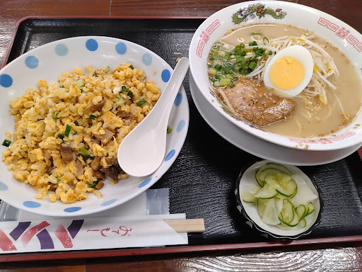 Read moreラーメン屋さんだけど定食物が豊富なメニューのお店。店内はカウンター席を中心に配置して、外側に座敷席がある造りです。カウンター席は22席あり、お一人様どうぞの雰囲気ですね。チャーハンセットを頂きました。基本のセットはミニラーメンですが、普通サイズにも変更できるようでした。チャーハンは炒り卵タップリ感あります。ご飯が多いか、炒り卵が多いかみたいな感じのチャーハンでした。ラーメンのスープは甘さを感じるとんこつスープで、これはこれでお店の味だなみたいな独自性を感じます。結構なボリューム感があるので、コスパは最高。メニューも豊富なので、次回は何を注文しよう...
