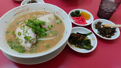 美味しい。 ちょうど良い塩味とちょうど良い甘みとブタの油を楽しめるラーメン。ライスがすすむラーメン。 私の知っている和歌山ラーメンのガツンとした豚骨の香りは無く、少しだけニンニクの風味を感じる印象です。和歌山ラーメンにカテゴライズされないかもしれません。しらんけど。知らないけど美味しいです。 基本の豚骨ラーメンがこんなにライスが進むんだから、カレーラーメンはもっと進むんだろうな。次行くのが楽しみです。 4人入れるカウンター(コロナ禍で席数を減らしているかもしれません)と、4人がけのテーブルが2つ。ご主人がお一人できりもりされているようで、テーブルの常連さんらしきお客さん達も、自分達の給仕を一緒にする地域密着感も、観ていて気持ちが良いお店。 満足感に溢れます...