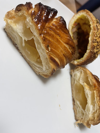 店舗に売っているパンを夕方買いに行った時も、パンを選んでいる私を目の前にして、小声で喋るわけでもなく普通にお喋りしているスタッフには不快に感じました。店内に私一人だったので、早くさっさと帰りたい気持ちになりました。 店頭のパンもチョコのかかったメロンパンはチョコは剥がれて見た目も悪い上にしなしなだし、フルーツの乗ったデニッシュやパイ生地のパンなど、サクッと感はなく、トングで取った瞬間からしなっとしてる感じが分かります。はっきり言って見た目だけで美味しくないです。パンの種類は豊富ですが、もう少し種類を減らしてもっと一つ一つ丁寧に作って美味しい物を店頭に並べてほしいです。