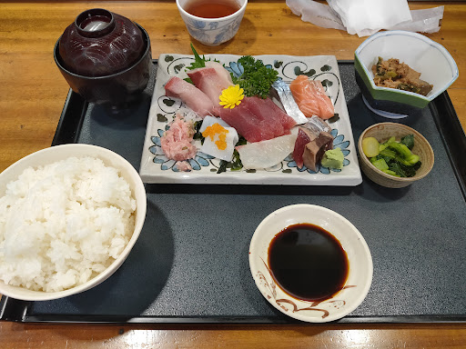 Read more日曜日の昼食に利用しました。子供連れや家族ででの利用が多いように思いました。まわりのお客さんから聞こえてくる注文では刺身定食が多いような気がしました。私も刺身定食を、連れは海鮮丼を頼みましたがどちらも新鮮な刺し身がたくさんのっていて、また種類も多いので食べ終えたあとの満足感はあると思います。貴志電鉄の一日乗車券を見せるとコーヒーかマンゴージュースのサービスがあります。今思えばマンゴージュースでも良かったかもしれません。定食以外にもいろいろなメニューがあり、個人的には太巻き寿司や鮎ずしが気になりました。お隣が鮮魚のいけすのある鮮魚卸をされているようで、お魚が新鮮でネタが豊富なのに納得しました。近くを通る機会があれば一度よってみるのもいいと思います。平日は行列ができるとのことですので、時間に余裕をもって行くのもいいと思います。持ち帰りのお寿司も色々あるのでお土産...