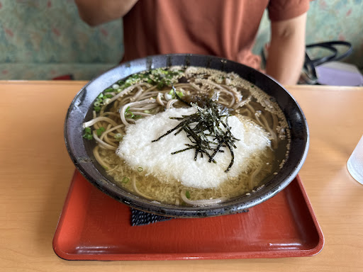 Read more名物のびっくり蕎麦を食べました。大きな海老天が乗っており、蕎麦も沢山入っていてボリューム満点でした!名前も実物もインパクト抜群で蕎麦好きには堪らない一品でした。食券制なのでオーダーがスムーズで提供も早いので快適でした。窓から見える外の景色も緑が一面に広がっており、リフレッシュできました。暑くなってきたら、今度は...