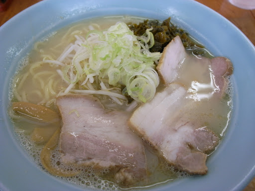 Read moreあっさりなスープが旨いラーメン屋さん。すり鉢ラーメンが話題なようで、ついついチャレンジしたくなりました。麺2玉分らしく、初めての来店時にラーメンと餃子を注文。難なく食べられたので、腹すかして行けば食べられると確信して注文しました。量が話題かと思いきや、丼の代わりに正真正銘のすり鉢。スープまで飲む干す事はできませんでしたが、全て完食。ここのラーメン屋さんではなんこつラーメンも旨いですが、私は一番ポピュラーなラーメンが一番旨いと思います。純粋に豚骨スープを堪能したいなら、具がいろいろ入っているとスープに溶け出し、ラーメン本来のスープの味を邪魔するようで。私は普通のラーメンが一番旨いと感じました。蕎麦屋で言うところのかけ蕎麦み...