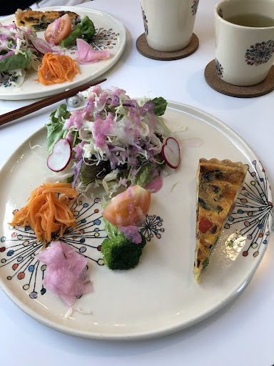 大きな通りからは少し離れた静かな場所にありました。 料理は1種類しかありませんが、ドリンク・デザートは数種類から選べます。 最初に前菜のワンプレートでサラダやキッシュ等をいただきましたが、サラダのドレッシングが美味しくキッシュも温かくてとても美味しかったです。 メインはハンバーグと鶏肉と野菜の煮浸し等をいただきましたが、これも又とても美味しかったです。 外でも食べれるようなので、涼しくな...