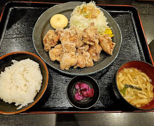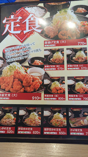 日曜祝日は家族連れが多く、混んでいる。平日はリーマンで混んでいる。時間帯を少しずらしたらいいかも。 と、やはりビンゴ。12:40頃行ったら余裕で入れた! で、悩んだ結果チキン南蛮の大にして、連れは唐揚げの大でシェアすることに。 ご飯の量は普通で。だったんだけど、オイコラ!これ普通か?という、ご飯と味噌汁が乗ってきた(笑) チキン南蛮の量も多い(大だから当たり前?)味はきちんと美味しい甘酢について美味しい。何も考えないでタルタルソースで食べるとジュワっと熱い思いをします。 これは、唐揚げも同じ。少し大きめの唐揚げがドーンと乗ってきて、何も考えないで口に入れたら火傷します(笑) タルタルソースが少なかったかなぁ。わざわざ小皿に乗っていたけど、ドッサリかかっている方が好きだな。 小鉢、漬物もついてこれはいい感じ。 シェアして食べたけど、全体的に美味しい。まずい要素はなし。ドリンクバーもつけれるようで、リーマンの方が、仕事しながらファミレスみたくしていました。 ひっきりなしに人は、出入りしていました。座敷もあり夜メニューにはモツ鍋もあるみたい。 カウンター(というか、一人用席)もありココは有りだと思いました。その辺のファミレスは賑やか過ぎて最近は避けていたけれど、ここなら一人でも来て、ドリンクバーつけて少し仕事しながらとか仕事の合間の時間調整に(そんなに長居しないけど)時間帯をずらしたらいいなと思いました。 もちろん混んでるときは迷惑なのでサッサと回転率上げましょう(笑) 次は鉄...