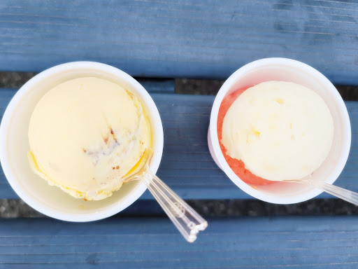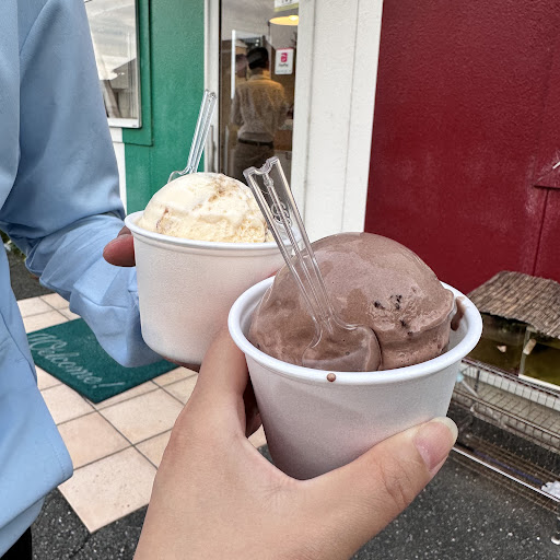 ・本当にどれも外れなしのジェラート。これなら暑い夏のシーズンだけでなく、冬でも暖房のかかった車で食べたくなるジェラートです。 ・お店の前に車を止めることができるので、空いていればそのまま車内で食べるのも良し、お店の前の椅子に座って食べるのも良し。