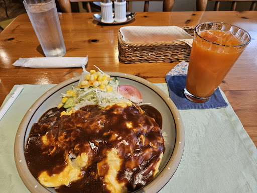 だいたい 15分くらいで お料理到着です☺️ お店も おしゃれだけど オムライスも おしゃれ DINO風は ライスが ピラフにふんわり玉子とデミグラスソース。 ピラフは バターきいている ハムチャーハンみたいな感じ お母さんが作ってくれたみたい。 そこに ふんわり玉子とデミグラスソースが 良い仕事してます。 劇的感動は無いながらも 安定の旨さでした。
