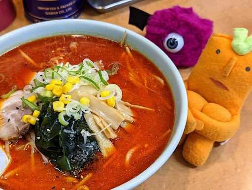 中辛は思ったより辛くはなかったので、 次は大辛にしようとおもいます。 ら~めん自体は手打ち麺で こくのある味噌ベースのスープ☆ とても美味しかったです。