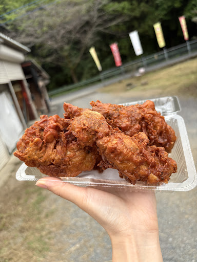 Read more山の中にぽつんと出てくる店。 唐揚げ好きのなかなかの大食いの2人で少ないかなと心配しつつ、4ケ¥540したが、2個ずつで十分なボリューム‼︎コスパの良さに感謝。 ガリッガリのせんべいのようなコンガリ衣に、ジューシィな鶏肉がたまらない!胡椒がかなりきいていて、パンチのある濃いめの唐揚げ。 中華風唐揚げと2種類から選べる。 外の冷蔵庫には外にレバーの味噌煮や、もつ、卯の花などおかずも美味しそうだった。