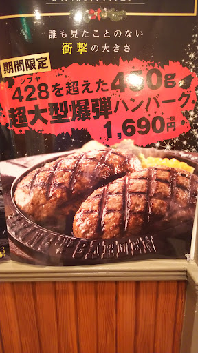 追記。 キャンペーンやってて450gの爆弾ハンバーグ食べてきました(笑) 意外とペロッと行けちゃいました(^_^;) ライスのおかわりを大盛で2回www 帰ったら動けませんでした。 エビフライコンボ(爆弾はクイーンサイズ)は奥様が注文しました。 ちなみに奥様も大盛ライスをおかわりしてましたwww