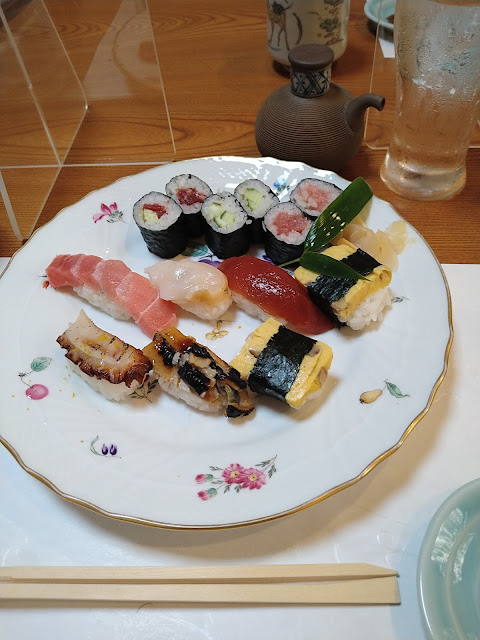 美味しかった。 ランチでの利用で、ランチコースに加えて、一品ものを少々。 最初に良かったのはお茶。 お通しのお茶から美味しい。 メニュー表にはお店の成り立ちや出来事が記載されていて、待ち時間も飽きない。 コース料理の前菜は2品あり、一品目は小さな素麺を投入で食べるもの。 湯葉とポン酢でサラッと食べられる。 2品目はこんにゃくステーキ。 こんにゃくの臭みが全くなく、とても美味しい。 一品ものの一品目は岩牡蠣。 こちらは舞鶴産天然牡蠣 大きなものを3枚切りにカットしてある。 若干牡蠣特有の臭みが残っているのが残念。 残り一品ということだったので、仕入れから時間が経っていたのかもしれない。 二品目は車海老の塩焼き。 イマイチ海老の旨味が足りない。サイズが小さめだが塩梅はちょうど良い。 メインの寿司はイカ、カッパ、鉄火巻き、玉子が2つずつ。 漬けマグロ、まぐろの赤身、鯵、タコ、昆布が一巻ずつ。 シャリが少々温いが、小さくて食べやすい。 私の好みのサイズだった。 玉子はトウモロコシが入っている。これがとても美味しい。 特筆するべきは鯵。 ここまで濃い鯵は初めて食べました。決してネタが厚いわけではないのに、これは凄い。 デザートにカスタードプリン。こちらも味が濃く美味しい。 しょっぱい口の中が、きれいに洗われていくような感覚。素敵でした。