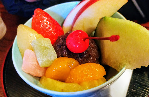 パフェイ(と表記します)とあんみつはこんな感じで季節のフルーツてんこ盛り。 とはいえ大盛りサイズというわけではなく、デザートとして丁度いい大きさです。