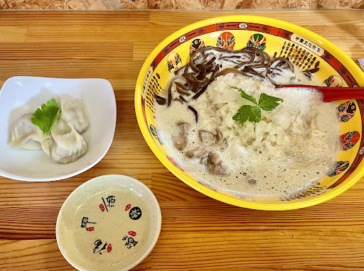 Read moreいつの間にか出来ていた店です。割りと近くに来ますが、反対側の通りだったので気付きませんでした。 席はカウンター3。小上がり2。座敷が奥に有るみたいですね。 壁に感謝の言葉等が書いてあって良いですね。縁有って日本でお店を開いたそうです。家庭的な暖かい雰囲気でした。 頼んだのは《鶏白湯拉麺》900円。《味玉》110円。《玉ねぎ増し》110円。《キクラゲ増し》110円。《はまちゃん餃子》480円。1710円です。 鶏白湯はクリーミーではありますが、嫌なえぐ味などは感じませんでした。後味もスッキリした感じです。クドイ位のドロドロ系の濃い味が好きなら、薄いと感じるかもしれませんね。私は美味しいと思いましたが、スープがあまり熱くなかったのが残念です。 麺はストレートの細麺。博多ラーメンの鶏バージョンみたいな感じがします。 玉ねぎとキクラゲを増しにしましたが、思ったより少なかったです。味玉は薄味でしたが、半熟加減が良かったです。 餃子は味が付いているので、そのまま食べられると説明されました。拉麺のスープに入れて食べても良いし、酢や醤油を使って好みの食べ方をしてくださいとの事でした。 餃子は皮がモチモチしていて、ニンニクが効いています。濃すぎない味付けで、私の口に合いました。 スープに浸して食べたら、スープの味の方が強くて餃子の餡の味がボヤけました。私としては、そのまま食べるか酢醤油を少し付けて食べる方が好みですね。 日本の餃子や中国東北部の遼寧省などの餃子とは系統が違う味だと思いました。 女性が一人で切り盛りしていましたが、明るく丁寧で元気な接客で良かったです。まだ試行錯誤しながらやっているのでしょうかね?頑張ってほしいです。 少し値段が高めかと感じましたが、昨今の原材料の高騰を考えたら仕方ないのかもしれませんね...