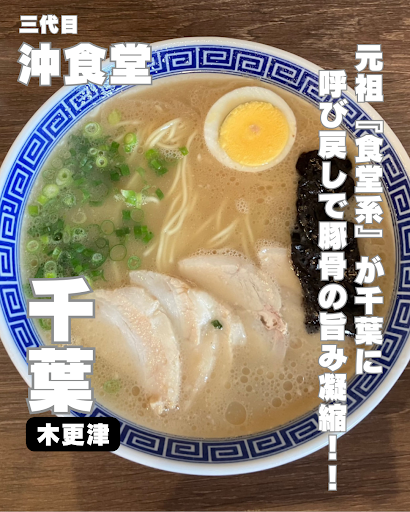 Read more三代目 沖食堂@〒292-0009 千葉県木更津市金田東5-4-1 どうも、さぴおです ✍️ラーメン 850円+半焼きめし 350円(平日限定) ______________ 🍥ポイント ✅呼び戻しスープで豚骨の熟成さがフック!あっさりもコク深くほんのり甘いタレが効いた久留米豚骨! ✅1955年創業『食堂系』の元祖! ✅高校生から通い、修行すること35年。木更津にて独立開店! ✅️平日限定で半やきめしのセットメニューがあります  ̄ ̄ ̄ ̄ ̄ ̄ ̄ ̄ ̄ ̄ ̄ ̄ ̄ ̄ [点数] 87点 ☆4.2 [アクセス] 『巌根駅』(1.7km) [注文メニュー] ラーメン 850円+半焼きめし 350円(平日限定) [並び・システム] 並びなし・食券 [味] 豚骨