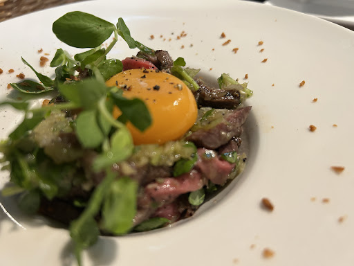 Read more三食限定のロッシーニが食べたくて行きます。 5時に予約して到着したらcloseの看板。えっ?嘘?と思ったらopenにし忘れでした。あービックリw メニューに「絶対食べた方がいい」とあったローストビーフ、少し固かった。おつまみようなのかな?ポン酢の味が濃くて肉の旨味を感じれない。ドイツ村のローストビーフの方が美味しかったなぁ✨しっとりと柔らかくて噛むと肉の旨味が溢れた。 炙り寿司、目の前で炙ってくれて演出は素敵だけど、口に頬張ったときに肉感無し。脂は水っぽいというか甘味や旨味などというものは全く無し。 ふわふわ卵のカルボナーラは肉が苦手な子供のために、上にのっているふわふわ卵フォームはジャガイモ風味。これ卵?でも美味しかったです、子供完食! チーズのピザ、ハチミツかけて食べるやつ。チーズの塩味とハチミツの甘味が合わさって美味しい✨ 白レバーのペースト、パンに塗って食べるやつ。うまっ!普通のレバーより癖がない感じ。 切り株、脂にやられて完食ならず。 ロッシーニは安定の美味しさ、それなりに噛みごたえのあるフィレ肉、フォアグラが美味しーい✨ソースも濃すぎずお肉の邪魔しない。 好みだけど、どれ頼んでも外れがなーい✨って訳ではないので、行って...