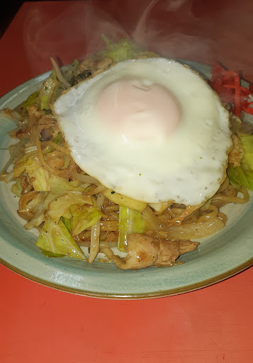焼きそばは野菜たっぷり 天かす入り 麺がべちゃっとしていて肝心なソースの味が あまりしないかなり薄味だった ソースの味がしっかりして青海苔がかかってる ソース焼きそばが好み 麺がベチャベチャな焼きそばには本当にガッカリした