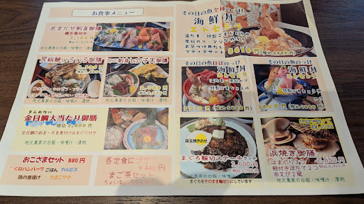 おまかせ刺身御膳・焼き魚付き 2100円 房総アジいろいろ御膳 1800円 その日の魚乗っけ海鮮丼エトセトラ 1800円 目玉焼き乗せマグロ輪切りステーキランチ...