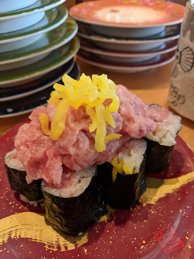 This is a Kaiten(conveyor belt) sushi place, but on the higher scale. Do not come here expecting sushiro, Hama sushi, or the myriad of 100 yen per plate places. On the other hand though, the freshness, and size is great.
