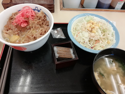 Read more牛丼チェーン店。ここの店舗は最近リニューアルして、セルフサービス店になりました。店舗限定でご飯のおかわり無料で出来ます。 ドライブスルーあります。 券売機も2台あり、あまり並ばないで購入出来ます。 セルフサービスなので、出来上がったら番号で呼び出しとモニターに番号が表示されますので、自分でカウンターまで取りに行きましょう。 食べ終わったら返却口までかたしに行きましょう。 返却したら、「ごちそうさま」と言ったら、元気良く「ありがとうございました!」と言ってもらえます。 普通の店舗だと「ごちそうさま」と言っても聞こえなかった事にされてスルーされる時があるので、ここのこういうコミュニケーション...
