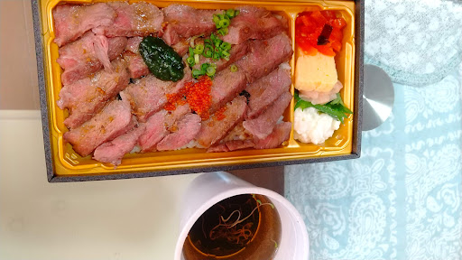 和牛ステーキ重弁当をテイクアウトいました 事前に電話し20分程で伺う旨を告げておいた所、店への到着時間に合わせて温かいお吸い物を用意しておいてくれました❤️有り難し!安堵旨し!
