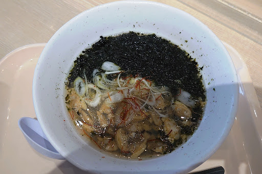 Read more昼に入りました。 フードコートの店の一つで、あさりや金目鯛を使ったラーメンが売りらしいです。 フードコートだけあり、共用ですが席は沢山有ります。カウンターならコンセントも有るので、充電なども出来ます。 頼んだのは《あさりの塩ラーメン・あさり御飯のセット》1230円です。クレカ使えました。 券売機で食券を購入すると、自動的に注文が入ります。モニターに番号が表示されたら取りに行くシステムです。 正直なところ期待はしていませんでしたが、やはりと言うか、また食べたいとは思えない味でした。不味いとは言いませんし、あさりの出汁も感じます。しかし、値段にしては普通かなと。今は貝出汁のラーメンも珍しくはないですしね。あさりは時期外れだから冷凍の剥き身でしょうが、身が痩せているあさりでした。多分ですが、輸入物かも。 あさり御飯はダメでした。あさりは固く成っていて、御飯がかなり柔らか目です。生姜を使えば味が引き締まるのに、使っていませんね。錦糸卵なども散らしていませんし、刻み海苔も無いです。 もう少しあさりの出汁を強くしたり、麺にあさりの出汁を練り込んだりすれば違うのかなと思います。もしくは、木更津の海苔を麺に練り込んで、緑掛かった麺にするとか。 もっと工夫のしようが有ると思いますね...