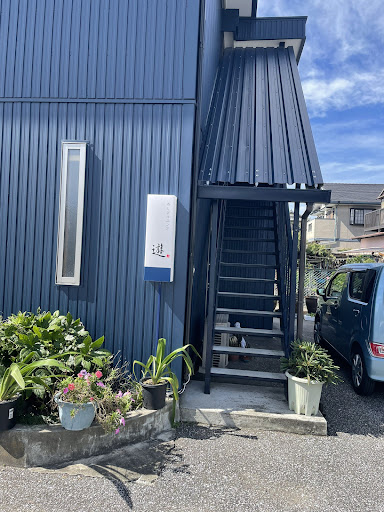 お店は二階に有り、入り口への階段は 一枚目の写真の奥の車が止まっている方