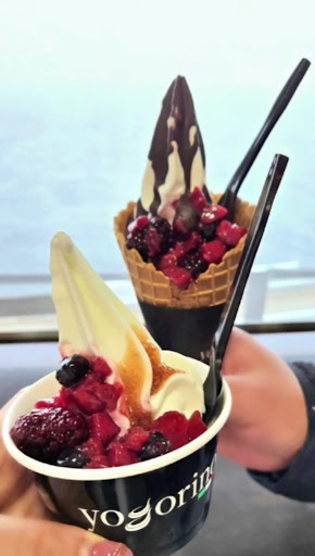 甘くて濃厚!でもヘルシーで安心 【イタリアNo.1 】ヨーグルトフレーバージェラートのブランドyogorino(ヨゴリーノ) さん。 ソフトクリームも有、 苺やベリー系、他 フレッシュフルーツやチョコレートetc…また、クレープもあり圧巻の品数。店舗も清潔感がありカラフルで楽しい。 海ほたるは何度か訪れておりますがスタバで終了していて損していました。今回は初めてぐるっと一周。