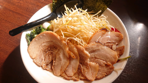 Read more20:00頃に来店。 口コミが微妙だったため不安だったが、とりあえずオーソドックスな醤油のチャーシュー麺と、麺増し、海苔、ライスを注文。 麺固め以外は普通で。 5分程度で着丼。 スープは鶏油が乳化してて濃厚、麺は濃厚スープが絡むがっしり系の極太麺、海苔がまたスープをしっかり吸込み、固めのご飯とよく合う。 チャーシューも程よい固さで馴染んでいる。 正直旨い! 分かってるわー!...