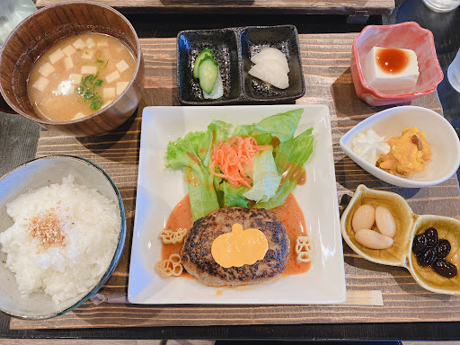 今回は週替わりランチを注文しました♪ 少し時間はかかりますが… 待つ価値ありですよ! バンバーグもお肉の食感を感じつつ、旨みがある。 ハロウィン期間でチーズはカボチャの形にカットされていて、ハンバーグの周りにはミッキー、ミニーのパスタが!可愛すぎ😍 お茶碗も男性女性で大きさを変えている気配りは、すごいと思いました。