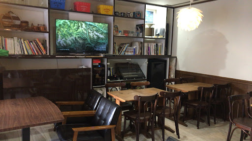 自泉会館の影響か、音楽や楽器の姿をしたソファー、壁飾りがある。 高いインテリアセンス。テーブルや照明にアートな工夫が凝らされており、雰囲気はいい。 飲み物はいたって特徴の感じられないコーヒー(エスプレッソ・カプチーノ)、紅茶、オレンジジュースなど。 定番のケーキセット があり、総額から50円引きとなる。サイドメニューはホットケーキ、フレンチトースト、たまごサンド。フレンチトーストとホットストレートティーをオーダー。 紅茶は器が安っぽくて英國屋などには敵わない。量も小分けできず、いっぱい分だけだ。 でも、フレンチトーストはジュワッとしたバターと卵は遠慮なく充分に染み込んでおり、絶品!なんどでも食べられると思った。 それにしても店内に置いてある小物がとても興味深い。 50インチと思われる大きなディスプレイモニター、DVD、ニューニンテンドウスーファミミニ。音楽関係の機材、大きなスピーカー…話題には困らなさそうだ。 店員と仲良くなったり貸しきれば使えるのかもしれない。 岸和田市役に勤める人や福祉関係の仕事に就く方々の行きつけでもあるそうな。 ただ、分煙でなくタバコはいつでも吸えるとのことで...