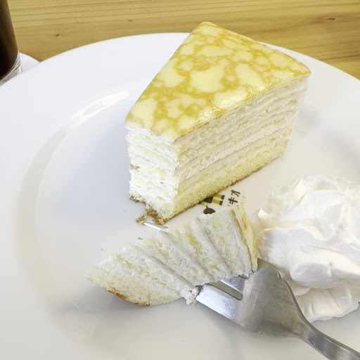 食べてみると、クレープ生地とスポンジ生地と生クリームが一層一層重なっていて、食感も良いし甘くて美味しい♡