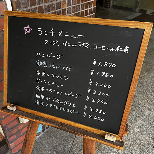 昔ながらの洋食屋さんです。 他の方の口コミにあるように、ソースが赤ワインの味がきいてるハンバーグはおススメです。 サラダのドレッシングは手作りで、トマトの皮を剥いてあるのも嬉しいです。 スープはにんじんとセロリのスープ。手作りのポタージュは体に優しいお味でした。