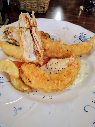 ■2022年6月中旬ランチ訪問 有頭海老フライがありそうなので、気になっていました! 初回なので、1番お得そうなリッチランチ(1150円)を注文。日替わりのサービスランチ(850円)に有頭海老フライが付くセットになってます♪ 日替わりメインの内容は、豚ロースの網焼きとグラタンコロッケでした。 豚ロースは柔らかく、シンプルな味付けなのに美味しい。また付け合わせの玉ねぎの甘いこと。海老フライもサクサクで中身もしっかりあります♪ サラダもしっかりあり、大満足です。 ドリンクは、ホットコーヒー代から差額はその分がプラスになるよう。