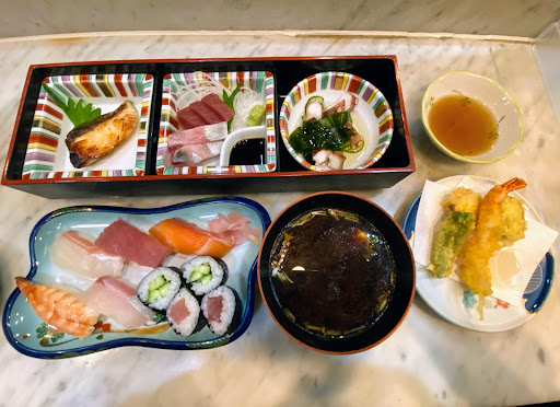 Read moreランチにサービスセット(¥1650税込)を頂きました😄 お寿司・天ぷら・酢の物・刺身・魚・赤出し・茶碗蒸し・コーヒーとついてリーズナブル 大変美味しく頂きました。😋 お腹いっぱいです。😅 ご馳走様でした。🙏 お店は昭和感がありますが、接客良い感じです。 駐車場は少し離れて店左交差点ホットモット向かいにあります。 がんばる岸和田‼︎応援キャンペーン対応店です。お得です。 和...
