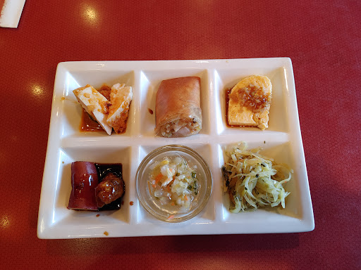 前菜の6品はクラッカーの上にエビが乗った奴と何かの肝を煮たやつはとてもおいしかったです、それ以外は微妙でした しゅうまいとスープはどっちも普通でした サラダに唐揚げが入っているやつは唐揚げがびっくりするぐらいクオリティが低かったです 魚のオイスターソース煮は魚の下味とオイスターソースがかなりマッチしておりかなり美味しかったです