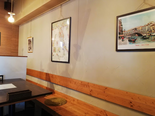 店内は思うより広く、カフェ風な造りにまとめられています。 イタリアの地図やリアルト橋のポスターチックな絵が飾られています。