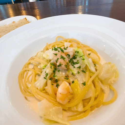 パスタはクリームかトマトの2種類から選べます。 せっかくの外ランチなのでクリームで。 もっちりめのパスタと濃厚クリームソースが絡んで美味しかったです。