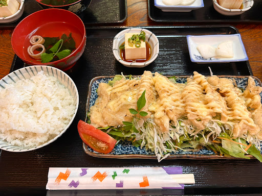 Read more駐車場は非常に狭い上に歩道の段差もあるので止めにくいです 駐車場には名札があるのでさその店の名前の名札の所に停める必要があります 平日11時半に行くと既に客がいました、そのあともチラチラ客が来ていたので昼時に駐車するのは絶望的と思われます エビマヨ天の定食を注文 ご飯おかわり不可、大盛り50円+たとの事だったので大盛りにする850円 8分程で到着 エビは食感もよく量も多めで良かったです エビの下に引いているサラダも結構量があります 油物中心なのでミニ冷奴も嬉しいです 総じてこ...